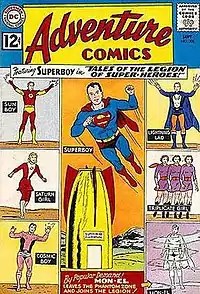 ![]() Cover of Adventure Comics #247, the first appearance of the Legion of Super-Heroes (April 1958) Art by Curt Swan and Stan Kaye | |