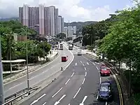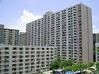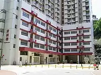 Lei Muk Shue Estate (Chinese: 梨木樹邨) is a public housing estate in Sheung Kwai Chung, Tsuen Wan, New Territories, Hong Kong, near the exit of Shing Mun Tunnels. It is the largest public housing estate in the Tsuen Wan District, with the population of 28,100 in December 2021.[1] Although it is geographically located in Sheung Kwai Chung (literally means "Upper Kwai Chung"), administratively it belongs to the Tsuen Wan District[2] instead of the Kwai Tsing District because it is at the west of Wo Yi Hop Road, the boundary between the two districts.
