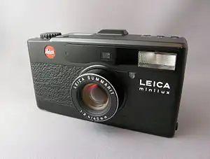 The Leica minilux is the first in a series of four luxury titanium-clad point and shoot cameras that were produced by Leica Camera starting from 1995; it is equipped with a high-quality lens and body to compete with similar premium compact cameras produced during the Japanese bubble-economy era, including the Contax T line, Konica Hexar, Nikon 28Ti/35Ti, Minolta TC-1, Ricoh GR series, and Rollei QZ 35W/35T. All of the cameras in the minilux series, including the original minilux (released in 1995), Leica minilux zoom (1998), Leica CM (2004), and Leica CM ZOOM (also 2004) used 35 mm film; the minilux and CM were equipped with the same Leica Summarit lens (f=40 mm f/2.4), while the minilux zoom and CM Zoom were equipped with a Vario-Elmar lens (f=35~70 mm f/3.5~6.5).