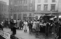 Prior to 1914, officers of the regiment wore in review order a hussar style uniform comprising a busby with white over scarlet plume, a short dark blue jacket with scarlet collar and cuffs laced and braided in silver, and dark blue overalls (tight cavalry breeches) with double scarlet stripes. Other ranks substituted a dark blue peaked cap for the busby and white braiding for the silver of the officers' uniform.[28] This elaborate dress continued to be worn between the wars by officers attending Court levees and is still worn by the Guidon Party of the modern B Squadron (LBY) on ceremonial occasions. Normal service dress for all ranks was khaki from 1903 onwards, initially worn with scarlet facings.[29]