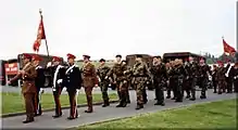 The regiment was formed by the amalgamation of the Leicestershire Yeomanry and the Derbyshire Yeomanry in 1957.[2] The regiment was re-roled as infantry in 1967, with four squadrons.[2] In 1969 it was reduced to a cadre.[2] The cadre paraded its Guidon at Catterick Garrison later that year and was expanded to squadron strength as the Leicestershire and Derbyshire (Prince Albert's Own) Yeomanry Squadron, 7th Battalion, the Royal Anglian Regiment in 1971.[2]