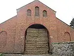 The Leighton Model Farm or Home Farm near Welshpool in Montgomeryshire was a pioneering Victorian farm built on an industrial scale. It was built between 1847 and the early 1860s for John Naylor of Leighton Hall to designs by the estate architects Poundley and Walker.[26] It consists of a rectangular complex of red brick buildings, which includes 12 listed buildings, of which 10 are Grade II* listed buildings and two are Grade II. The farm was a gradual development structured either side of a central E-W axis in which a threshing barn was built with hay and fodder storage buildings either side of it, all of which were linked by a broad gauge railway. On the N and S sides of this axis stockyards were built, served by 2 N-S service roads. Naylor spent £200,000 between 1848 and 1856 on developing the 4000-acre (1.620ha) farm on industrial principles. John Naylor's grandson, Captain J.M. Naylor, sold the estate in 1931, when the Leighton Farm was bought by Montgomeryshire County Council and subsequently split up into small industrial units and smallholdings. In 2010 the Potter Group of Welshpool purchased the historic Leighton Home Farm Complex. The formal transfer of the Victorian model farm, with seven houses and 200 acres of land, was completed between Powys County Council and James Potter, the managing director of Potter Group. This has paved the way for a comprehensive restoration programme of the Grade II* listed buildings which is currently proceeding, and has been grant aided by Cadw. James Potter's long term proposal is to create an equine centre at Leighton, building on his current National Hunt interests, and presents possibilities for future regeneration in the Welshpool area.[27] In August 2013 Yorton Farm, a stud farm in Shropshire, announced it is relocating its entire operation, including its four stallions, to Leighton Farm Buildings. Owners David and Teresa Futter have integrated stables and stud facilities into the existing Home Farm buildings.
