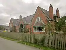 There is a wide range of estate housing on the Leighton Hall estate, which reflects the various levels of those employed on the estate. The estate manager's house was probable the ‘‘White House’’ on the main road near Severnleigh, while some of the more important houses were in a Tudor style and constructed in stone with elaborate terracotta chimney pots. The labourers on the farm had simple double cottages, such as the brick cottages near Moel y Mab. Often much older timber framed buildings were refaced in brick and given a Cottage Ornée appearance, often by adding decorative bargeboards to the dormer windows. Hollybush Cottage is an example of this. Poundley also used this Cottage Ornée style on houses on the Naylor's Brynllywarch estate, as at Cilthriew. Poundley designed many houses using red brick, which would have come from the estate brickyard and typically, as at Park House, he used rusticated stone quoining. His partner, David Walker in contrast, favoured whitish or yellowish brick with ornamental gables, as on a double villa type house near the Mill at Cilcewydd, which can be attributed to him.[47]
