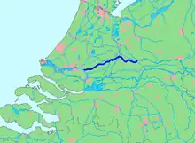 The Lek (Dutch pronunciation: [lɛk]) is a river in the western Netherlands of some 60 km (37 mi) in length.[1] It is the continuation of the Nederrijn after the Kromme Rijn branches off at the town of Wijk bij Duurstede. The main westbound waterway is hereafter called the Lek River. The Nederrijn is, itself, a distributary branch of the river Rhine.
