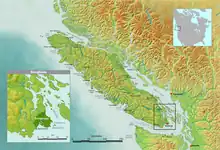 Sitchanalth was destroyed by a tsunami[2] related to a major earthquake along the Devils Mountain Fault that occurred around 930 A.D.[3] The death toll from the earthquake and resulting tsunami have been described as "catastrophic"[2] with a small group of survivors relocating from Willows Beach to what is now the Inner Harbour area of Victoria, British Columbia[2]