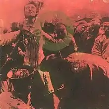 Bataille also wrote about the photograph in Inner Experience:[2] "In particular, I would gaze at the photographic image – or sometimes the memory which I have of it – of a Chinese man who must have been tortured in my lifetime. Of this torture, I had had in the past a series of successive representations. In the end, the patient writhed, his chest flayed, arms and legs cut off at the elbows and at the knees. His hair standing on end, hideous, hagard, striped with blood, beautiful as a wasp."