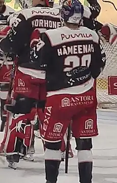 Hämeenaho's brother, Veikka, also plays in the Ässät organization, currently in the U20 team.[13] Hämeenaho's father, Jarmo, reprecented Kajaanin Hokki in the Mestis and has been a coach for Hokki's and Ässät's junior teams.[6][14]