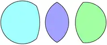 - Lune, a related non-convex shape formed by two circular arcs, one bowing outwards and the other inwards