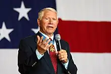In the 1974 U.S. Senate election in South Dakota, Thorsness was the Republican nominee against the incumbent Democrat George McGovern. It was believed that McGovern faced possible defeat for allegedly having neglected the state during his long 1972 presidential campaign. By May 1973, McGovern had already begun campaigning for reelection.[31] Thorsness had just been repatriated after six years as a prisoner of war in North Vietnam. He accused McGovern of having given aid and comfort to the enemy and of having prolonged Thorsness' time as a POW.[31] McGovern replied that if there had been no war, there would have been no POWs, and that everything he had done had been towards the goal of ending the war sooner.[31] However, the war did not become a significant issue in the Senate race.[32] Instead, the campaign was dominated by farm policy differences and economic concerns over the 1973–75 recession.[32][33] Thorsness charged McGovern with being a "part-time senator" more concerned with national office and with spending over $2 million on his re‑election bid, while McGovern labelled Thorsness a carpetbagger because he was originally from Minnesota.[32] In a year in which Democrats were advantaged by the after-effects of the Watergate scandal,[32] McGovern won re-election in November 1974 with 53 percent of the votes cast.