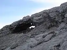 As typical karst mountains the Leogang Mountains are also pierced by numerous caves. The most famous of these is the Lamprechtsofen, over 50 km long, located immediately next to the federal road between Lofer and Saalfelden. A prominent rock formation is the Melkerloch in the southeastern face of the Birnhorn mountain.