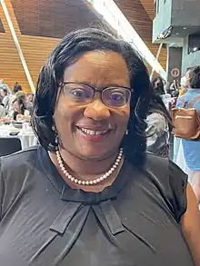 Harris earned a bachelor of science degree in mathematics from Spelman College in 1995, graduating magna cum laude.[2][3] In 2001, she earned her doctorate in applied mathematics from the North Carolina State University with the dissertation Differential Equation Models for the Hormonal Regulation of the Menstrual Cycle under the advisement of James Francis Selgrade.[4] Harris has been on the faculty at Bennett College, The College of New Jersey, Georgetown University, Marymount University, and the University of the District of Columbia.[1][5] Harris had the rank of associate professor at The College of New Jersey and at the University of the District of Columbia where she also served as chair of the Division of Sciences and Mathematics.[2] Prior to her current role at the AMS, she worked as a program analyst in the Office of Science at the Center for Tobacco Products of the FDA. She served as the executive director of the National Association of Mathematicians (NAM) from 2019 to 2022, and was the organization's interim president from June 2020 to January 2021.[1]