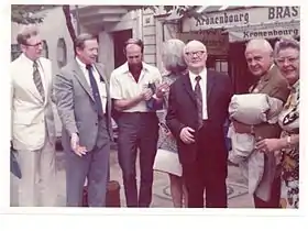 After the War, Northrup went to work for Storm Vulcan, a Dallas company, where he invented a machine to clean aircraft engines.[4][5] He also embarked on a venture to fit cars with air conditioning equipment, putting the machinery in the trunk and piping the cooled air through tubes in the headliner. This caught the interest of engineers from General Motors, who copied the system in Cadillacs in the late 1940s. "After market" automotive AC units were manufactured in Texas until the 1980s. He also sold some of the first air conditioning units, built by the Curtis Mathes Corporation, an early leader in manufacturing window units.[6] Northrup married Jane Keliher and started a family in Dallas, where he designed and built one of the first single-family houses in the United States with central air conditioning. He founded a company to install air conditioning in residential and commercial buildings. With a Marketing Plan from G F Sweetman (CEO of American Awards Co), he became one of largest suppliers of Curtis Mathes fans and compressors in the nation. He also developed a company to manage, install, update, and clean air filtration systems.