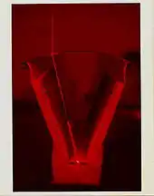 This interest led to hiring Blake and 16 other ex-aerospace engineers, who set up a research center in Littleton, Colorado, near Denver. The first Northrup, Inc. azimuth/elevation mirror array[13] was built with Northrup, Inc funds and a grant from the State of Texas. Designed by Blake’s team, the mirror array, dubbed "Northrup I", was assembled at the Northrup Energy manufacturing plant near Hutchins, Texas. It utilized multiple flat mirrors, with a weather-proof backing that became an industry standard. Each mirror was angled to the anticipated focal length to the central tower. Each moment of each year, each mirror had to be in a position to split the vectors between the mirror and the sun and the mirror and the target. This required a large volume of calculations, special computers and gearing mechanisms which Northrup designed. Team leader, Floyd Blake remembers, "Lynn climbed a ladder in front of the heliostats to take a picture of the sun reflected in them, then went up in a helicopter to be sure the heliostats were pointing correctly."