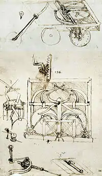 Leonardo's self-propelled cart is an invention designed by Leonardo da Vinci, considered the ancestor of the modern automobile.
