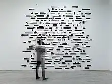 New York Times art critic Roberta Smith describes his large reliefs as “ pocked, splintered, seemingly burned here, bristling there, unexpectedly delicate elsewhere. An endless catastrophe seen from above. The energies intimated in these works are beyond human control, bigger than all of us”[10] Drew is known for creating reflective abstract sculptural works that play upon the dystopic tension between order and chaos.[11] Leonardo Drew’s work is reminiscent of Post Minimalist sculpture that alludes to America’s industrial past. The materials also reference the plight of African Americans in U.S. history.[12] One could find many meanings in his work, but it seems that he is ultimately concerned with the cyclical nature of life and decay, which can be seen in the grid and the transformation of raw material - lumber, steel, canvas, paper - to resemble debris.[13] This method generates an articulation of entropy and a visual erosion of time.