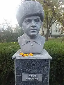 - In honor of Lenya Golikov, Golikov Lane was named and a monument[7] was erected in the city of Yoshkar-Ola (Republic of Mari El).