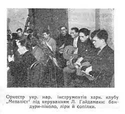 In 1921 Leonid Haydamaka had already formed a bandurist ensemble at the Metalist club, but because of the lack of good quality banduras and the fact that the bandura movement had not yet become mainstream, this attempt was not very successful.