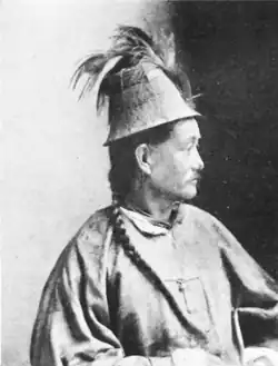 Lepchas are divided into many clans (Lepcha: putsho), each of which reveres its own sacred lake and mountain peak (Lepcha: dâ and cú) from which the clan derives its name. While most Lepcha can identify their own clan, Lepcha clan names can be quite formidable, and are often shortened for this reason. For example, Nāmchumú,[13] Simíkmú, and Fonyung Rumsóngmú may be shortened to Namchu, Simik, and Foning, respectively.[14] Some of the name of the clans are "Sada", "Barphungputso", "Rongong", "Karthakmu", "Sungutmu", "Phipon", "Brimu", "Lickchingmu ", “Sadamoo”, “Kabomoo”, “Molomoo”, “Lingdamoo” etc.