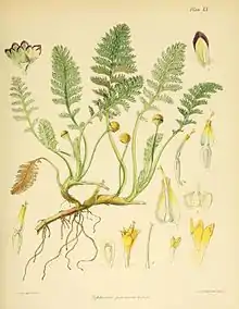 Leptinella plumosa is a small flowering plant in the daisy family. It is a circumantarctic species found on many subantarctic islands in the Southern Ocean. The specific epithet comes from the Latin for “feathery”, referring to the form of the leaves.[4]