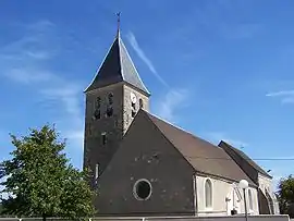 It is the oldest building in the commune. Its nave dates from the 11th century, the choir and the sanctuary from the 14th and 15th centuries. Like many small village churches, it does not have a cross-shaped plan. It has several Romanesque elements such as small round bay windows and a narrow, low limestone nave, as well as a vault with arches, but it has only one side aisle, whereas churches usually have a second one. Sculpted in the 11th century, a headstone supports the tabernacle. The church also has Gothic elements such as : the vault of the choir, a ribbed vault, as well as a bay windows with three lancet arches), dating from the 14th-15th centuries. It is thus a mixt of Romanesque and Gothic styles. There is a statue of the Virgin and Child from the 15th century, registered in the departmental inventory of historical monuments. The original bell tower was destroyed during the Hundred Years' War and was later rebuilt. The church was dedicated to Saint Martin during the reign of Henri III.In the 16th century, a wooden cartouche carved with the Roman numeral "1500" ("MC") was placed above the door of the sacristy. In the same century or the following one, frescoes were painted on the pillars of the nave. A baptismal font made of pink marble with a copper cover dating from the 17th and 18th centuries was also installed. All these elements are still visible today.