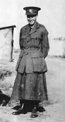 Whitehead enlisted as a man in the Royal Serbian Army at the age of 22.[8] Once in Serbia, Whitehead found herself able to freely live life like a man. This liberty was to be cut short, however, when on October 8, 1915, Serbia fell to Central Power forces. By November 3, 1915, Whitehead was working under occupation in the central Serbian city of Kruševac. According to Dr Catherine Corbett of the Scottish Women's Hospitals Second Serbian unit, this female engineer had been sent to Kruševac with the Serbian army within which she had "enlisted as a man".[9] According to contemporary newspaper sources, Whitehead was "acting as a lieutenant in the Veterinary Corps of the Serbian Army, having given up hospital work" so "she might get closer to the firing line" when Serbia's occupation began.[10] Under occupation, Whitehead's deftness with guns and outdoor skills were to prove more vital than ever before and came in particularly useful for the Scottish Women's Hospitals. Finding themselves frequently targeted by thieves in the form of desperate locals, prisoners of war and enemies alike, the Scottish Women's Hospitals recruited Whitehead as a "guard" in the hopes that she would help to deter the near-daily pillaging of resources and supplies. Her handiness did not go unnoticed by the enemy and by November 24, 1915, Whitehead found herself under the employment of "a German doctor", for whom she tended to "some large and complicated disinfectors".[11]