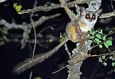 Lesser bushbabies, or lesser galagos, are strepsirrhine primates of the genus Galago. They are classified, along with the bushbabies (genus Euoticus) and the rest of the galagos (genera Otolemur, Galagoides, Paragalago, and Sciurocheirus), in the family Galagidae.[1] They are probably the most numerous primate in Africa, and can be found in every large forest on the continent, inhabiting forested areas, savannas, riverine bush and open woodlands.[2][3]