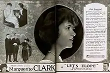 Let's Elope is a lost[1] 1919 American silent comedy film starring Marguerite Clark and directed by John S. Robertson. It was produced by Famous Players-Lasky and released through Paramount Pictures. The film is based on a play by Frederick J. Jackson.[2]