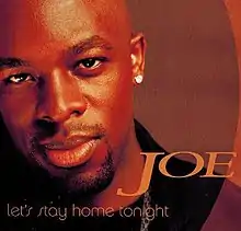 "Let's Stay Home Tonight" is a song by American R&B singer Joe. It was written by Johnta Austin, Joel Campbell, and Allen "Allstar" Gordon for his fourth studio album Better Days (2001). Gordon served as the song's producer, with Campbell providing additional production. Released as the album's lead single only twelve months after the success of his number-one single "Stutter", "Let's Stay Home Tonight" underperformed on the charts, reaching number 68 on the US Billboard Hot 100 and number 18 on the Hot R&B/Hip-Hop Songs chart in December 2001, becoming Joe's lowest-charting lead single up to that point.[2]This song was also inspired by the September 11th attacks. With him by shook up by the attacks, he wrote the song in the sense he wants to stay in and not want to go out.