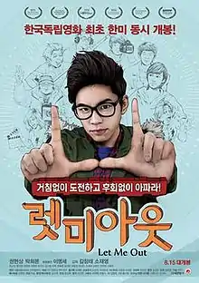 Let Me Out (Korean: 렛 미 아웃; RR: Let-mi-aut) is a 2013 South Korean film. Part coming-of-age, part comedy, the low-budget indie is about a film student's struggles with making a movie for the first time, and captures the harsh realities of the Korean filmmaking industry.[1] Produced by the Seoul Institute of the Arts and the Baekdu-Daegan Film Company, it was directed by Soh Jae-young (or Jae Soh) and Kim Chang-rae,[2] and starred Kwon Hyun-sang in his first leading role.[3][4]