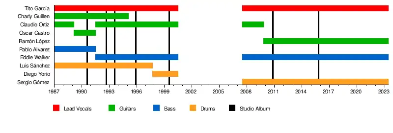 - Claudio Ortiz – guitars (1987–1989, 1991–2000, 2007–2009)