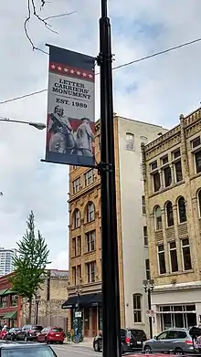 The Letter Carriers' Monument is a piece of public art by American artist Elliot Offner, located on a triangular plot formed by North 2nd Street, North Plankinton Avenue and West Wells Street in downtown Milwaukee, Wisconsin, in the United States. Created in 1989, the monument depicts three letter carriers and was commissioned in celebration of the centennial of the National Association of Letter Carriers (NALC).