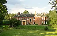 Although not listed, the present Letton Court, 90 yards (80 m) east from the parish church (grid reference SO3361846419), is the site of the former Letton Court, designed in 1859 by George Frederick Bodley (attributed in other sources to Mr Thomas Teulon or Samuel Sanders Teulon), on behalf of the Blissett family. The house was completed in medieval style by 1863, taking two years. The family became involved with angling, particularly salmon, reflected today by the fishery named after the Letton Court estate. The estate was acquired in 1889, through marriage, to the Dew family. In 1924 the house burnt down in two hours, caused by a workman's blow torch. The house staff attempted to stem the blaze, but destruction was complete before the fire brigade attended; what remained was the "north-east service wing, three strong rooms used to store silver and estate papers, and most of the wine-cellar". By 1926 a new Letton Court had been built on the site, its estate incorporating 768 acres (311 ha) of arable land and pasture. The estate in 2011 was on the market at a guide price of £11m.[47][48][49]