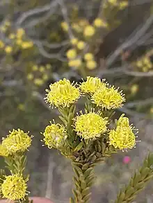 Leucadendron brunioides var. flumenlupinum, the Graafwater conebush, is a flower-bearing shrub and variety of Leucadendron brunioides, which belongs to the genus Leucadendron and forms part of the fynbos. The plant is native to the Western Cape where it occurs from Graafwater to Aurora and Eendekuil.[2]