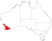 It is found in the IBRA Regions of Avon Wheatbelt, and Esperance Plains, on gravelly soils, deep yellow sand, and clay soils, on Sandplains and hillslopes.[4]
