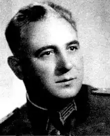 Lev Nikolov Glavinchev (April 19, 1903 - August 20, 1970) was a Bulgarian communist, officer (colonel) and politician. Glavinchev was a member of the Internal Macedonian Revolutionary Organization, and one of the most controversial personalities in the Macedonian freedom movement. An active participant in the communist partisan movement during the Second World War, he was also a commander of the First Sofian Revolutionary Operative Zone of the National Freedom Revolutionary Army (NOVA). As commendant of the People's Militsiya after the 1944 coup d'état, he personally, willingly and methodically killed officers, intellectuals and public figures.[1]