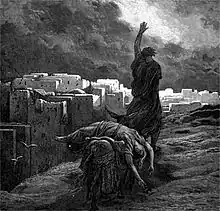 The episode of the Levite's concubine, also known as the Benjamite War,[1] is a biblical narrative in Judges 19–21 (chapters 19, 20 and 21 of the Book of Judges). It concerns a Levite from Ephraim and his concubine, who travel through the Benjamite city of Gibeah and are assailed by a mob, who wish to gang-rape the Levite. He turns his concubine over to the crowd, and they rape her until she collapses. The Levite dismembers her and presents the remains to the other tribes of Israel. Outraged by the incident, the tribes swear that none shall give his daughter to the Benjamites for marriage, and launch a war which nearly wipes out the tribe, leaving only 600 surviving men. However, the punitive expedition is overcome by remorse, fearing that it will cause the extinction of an entire tribe. To ensure the survival of the Benjamite tribe while still complying with their oath, the Levites pillage and massacre the city of Jabesh-Gilead, none of whose residents partook in the war or in the vow, and capture its 400 maidens as wives for the Benjamites. The 200 men still lacking women are subtly allowed to abduct the maidens dancing at Shiloh.