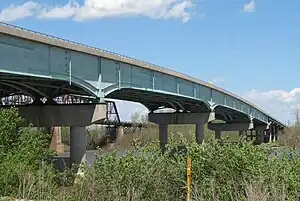 The original bridge was opened in 1927; it was replaced in 1979.[1] The new bridge was rehabilitated in 2006.[2]