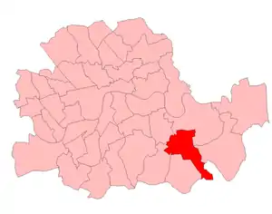 The Metropolitan Borough of Lewisham wards of Blackheath and Church Lee, Ladywell, Lewisham Park, Lewisham Village, Manor Lee, and South Lee.