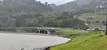 Lexington Reservoir is an artificial lake on the Los Gatos Creek near Los Gatos, California. The James J. Lenihan Dam, a 195 ft (59 m) high, 1,000 ft (300 m) thick earthen dam, forms the third-largest reservoir in Santa Clara County.[3][4]