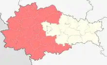 | Districts | Belovsky, Bolshesoldatsky, Dmitriyevsky, Fatezhsky, Glushkovsky, Khomutovsky, Konyshyovsky, Korenevsky, Kurchatov, Kurchatovsky, Lgovsky, Medvensky, Oboyansky, Oktyabrsky, Ponyrovsky, Pristensky, Rylsky, Sudzhansky, Zheleznogorsk, Zheleznogorsky, Zolotukhinsky |