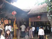 Đạo Mẫu practitioners maintain both public and private temples, engaging in worship and spirit possession.[11] The first temple devoted to Lieu Hanh has traditionally been considered Phu Van temple in Van Cat[12] which was originally constructed in 1642.[12] The next to appear was the Tien Huong temple sometime between 1643 and 1649, which would come to be the main center for Lieu Hanh's cult.[12] Temples to Lieu Hanh are known to have many wooden sculptures, and the temples themselves have intricate designs carved into the framework.[13]