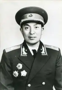 After the establishment of the Communist State, he was appointed division commander of the 198th Division of 66th Corps.[2] Soon after, he was accepted by Nanjing Military Academy (now PLA Military Academy).[2] In July 1952, the Chinese government commissioned him as division commander of 202nd Division of the 68th Corps.[2] He was present at the Battle of Kumsong and Summer Offensive Campaign during the Korean War.[2] After war, he was promoted to deputy commander of the 68th Corps.[2] He attained the rank of major general (Shaojiang) in 1955. In 1956, he was transferred to the coastal province Jiangsu and appointed commander of Lianyungang Fortress.[2] He was division commander of 15th Division of the Wusongkou Garrison in 1958, and held that office until 1962.[2] Since 1962 he successively served as deputy director and director of Engineering Command of the Nanjing Military Region.[2] In 1978 he became a consultant of Nanjing Military Region.[2]