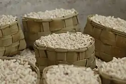 Lia (Odia: ଲିଆ) (fried paddy[1]) is a prepared food from rice mainly consumed in the region of Odisha, India.[2] The other varieties are Khai (Odia: ଖଇ) (fried paddy) and Ukhuda (Odia: ଉଖୁଡ଼ା)[3] (fried paddy sweetened by jaggery). It is a form of puffed rice (Rice puffs while roasting it with heated sand) which is added with jaggery syrup. "Kora khai", a derived food from "khai" is offered to Lingaraja in Lingaraja temple, Bhubaneswar.[4]