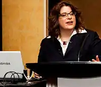 ![]() Lia Grimanis giving a speech at the Sheraton Centre (Photo: Tanja Tiziana 2009) | |