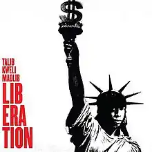 Liberation is a collaborative album by Talib Kweli and Madlib.[6] It was made available as a free download from Stones Throw's Rappcats website, and Kweli and Madlib's MySpace pages for the first week of 2007, beginning New Year's Eve 2007.[7] It was removed about a week later. One cover for the album is an adaptation of a piece by guerrilla artist Banksy, and an alternative cover (given away as a print-ready download) is a collage of Talib Kweli, a dollar sign, and the Statue of Liberty.