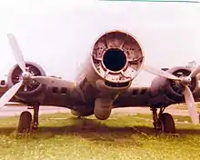 Boeing B-17 (sn. 44–85734)[4] did not see combat in World War II, and was originally sold on 25 June 1947, as scrap to Esperado Mining Co. of Altus, Oklahoma; it was then sold again later that year for $2,700 to Pratt & Whitney, which operated the B-17 as a heavily modified testbed aircraft[1] (similar to B-17s sn. 44-85747 and sn. 44-85813).[5] Following these flights, it was donated to the Connecticut Aeronautical Historic Association, where a tornado on 3 October 1979, blew another aircraft onto the B-17's midsection, breaking the fuselage.