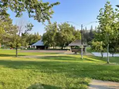 The new Liberty Park was completed in 1973 with a smaller pond, baseball diamonds, a pavilion, tennis, basketball and horseshoe courts, along with restrooms. Lighting was also installed in an effort to reduce crime and vandalism.[5] A pool was later added to the new park, which was subsequently expanded into an aquatics center in 2010.[6] In 2021, the Liberty Park Library, a branch of the Spokane Public Library, was opened in the park.[7]