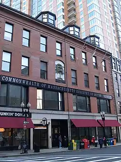 The Liberty Tree District is a historic district encompassing a collection of six mid-scale commercial buildings between the Downtown Crossing area and the Theater District of Boston, Massachusetts. They are clustered around the corner of Washington and Essex Streets, on the edge of the area known in the 20th century has Boston's Combat Zone, or adult entertainment district. The area is historically significant as the site in the 1760s of the Liberty Tree and the Liberty Tree Tavern, a focal point of colonial discontent against British rule. This significance is reflected in a carved relief on the Liberty Tree Block, a brick commercial block built in 1850 at the corner of Washington and Essex.[2] The building was designated as a Boston Landmark by the Boston Landmarks Commission in 1985.
