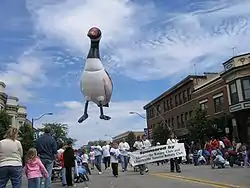 Libertyville's downtown area was largely destroyed by fire in 1895,[10] and the village board mandated brick to be used for reconstruction, resulting in a village center whose architecture is substantially unified by both period and building material.[10] The National Trust for Historic Preservation, which gave Libertyville a Great American Main Street Award, called the downtown "a place with its own sense of self, where people still stroll the streets on a Saturday night, and where the tailor, the hometown bakery, and the vacuum cleaner repair shop are shoulder to shoulder with gourmet coffee vendors and a microbrewery. If it's Thursday between 7 a.m. and 1 p.m., it's Farmer's Market time (June–October) on Church Street across from Cook Park -- a tradition for more than three decades."[16]