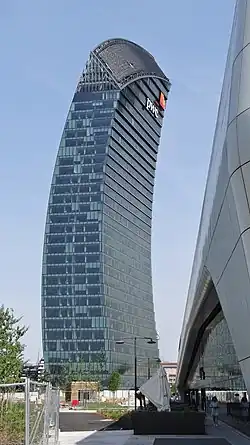 Libeskind Tower or PwC Tower, also called Il Curvo (The Curved One in English), is a skyscraper completed in 2020 in the city of Milan as part of the CityLife development project. The tower reaches a height of 175 m (574 ft) with 28 floors, and a total floor area of about 76,000 square metres. It is the home for the Milan offices of PricewaterhouseCoopers.[3] The project's designer and namesake is the Polish-American architect Daniel Libeskind.